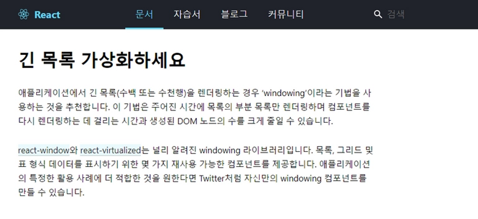 두 번째 시도(react-window 도입)