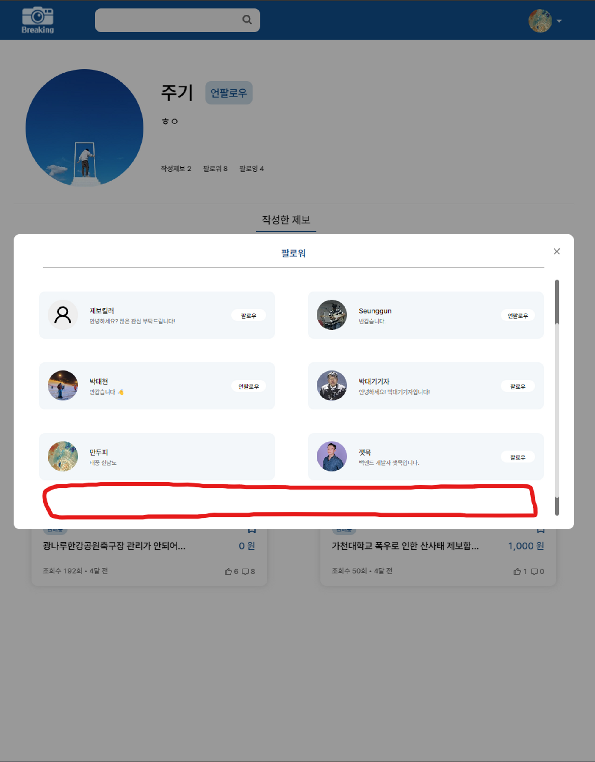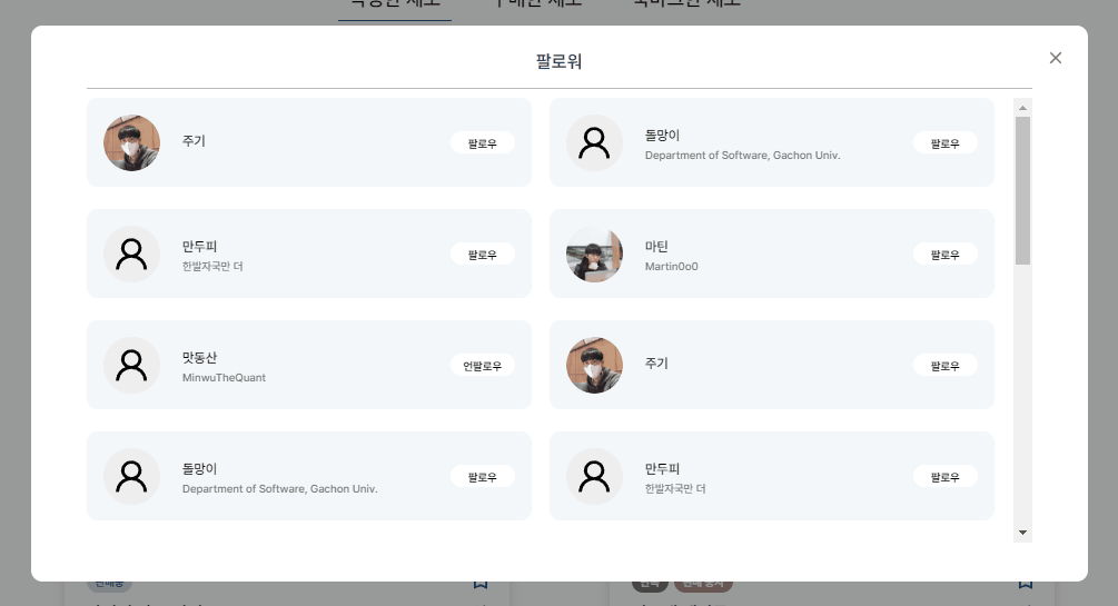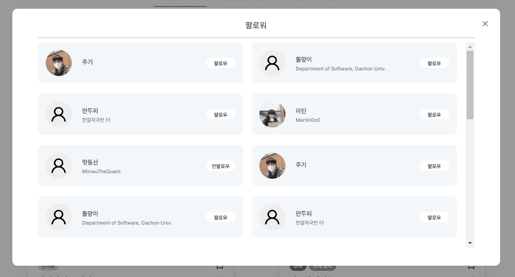 - 마이페이지 팔로우 팔로워 modal창에서 데이터 동기화 방법수정 필요