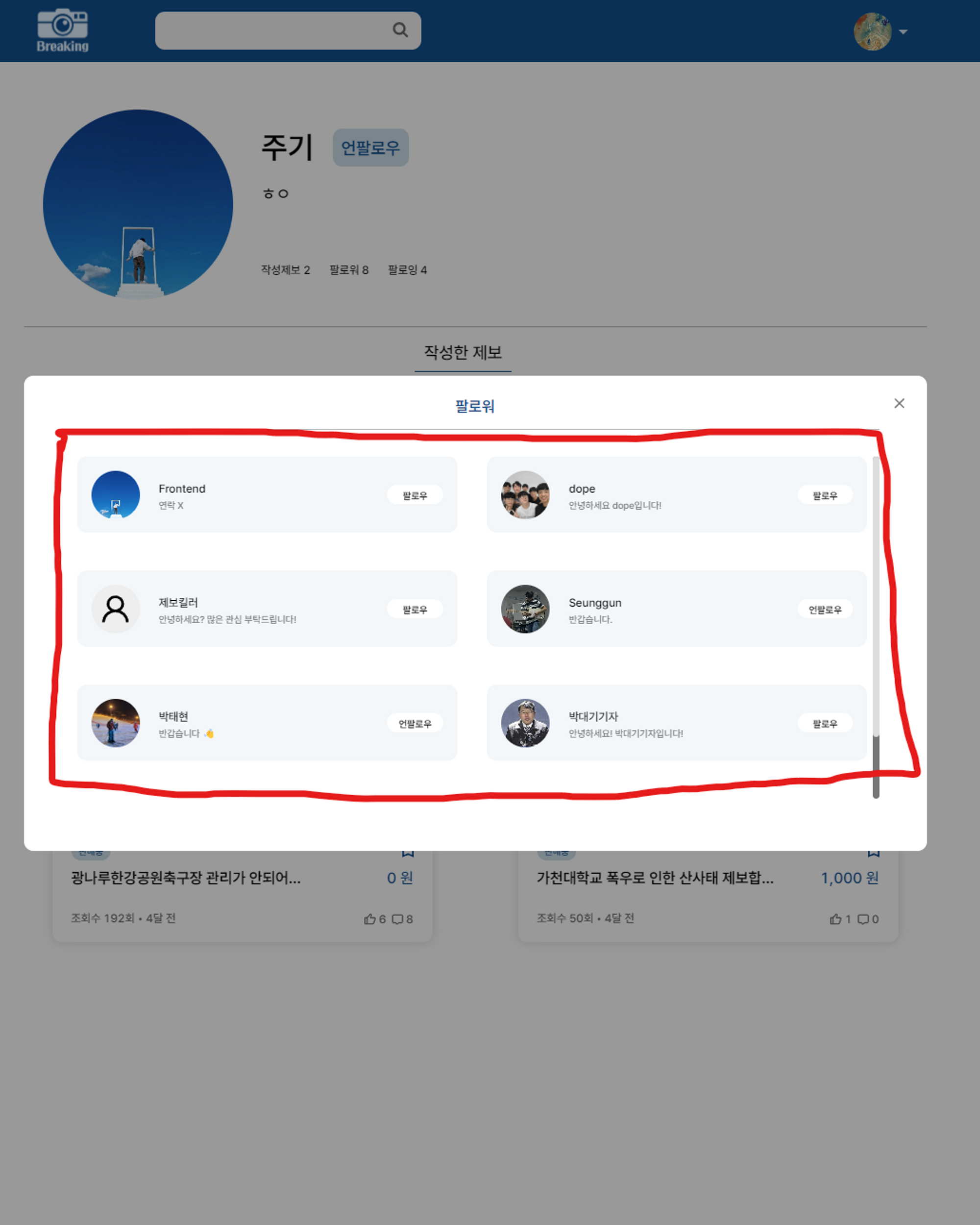 데이터(followList)를 가져와 map으로 데이터들을 보여주는 컴포넌트의 일부이다.