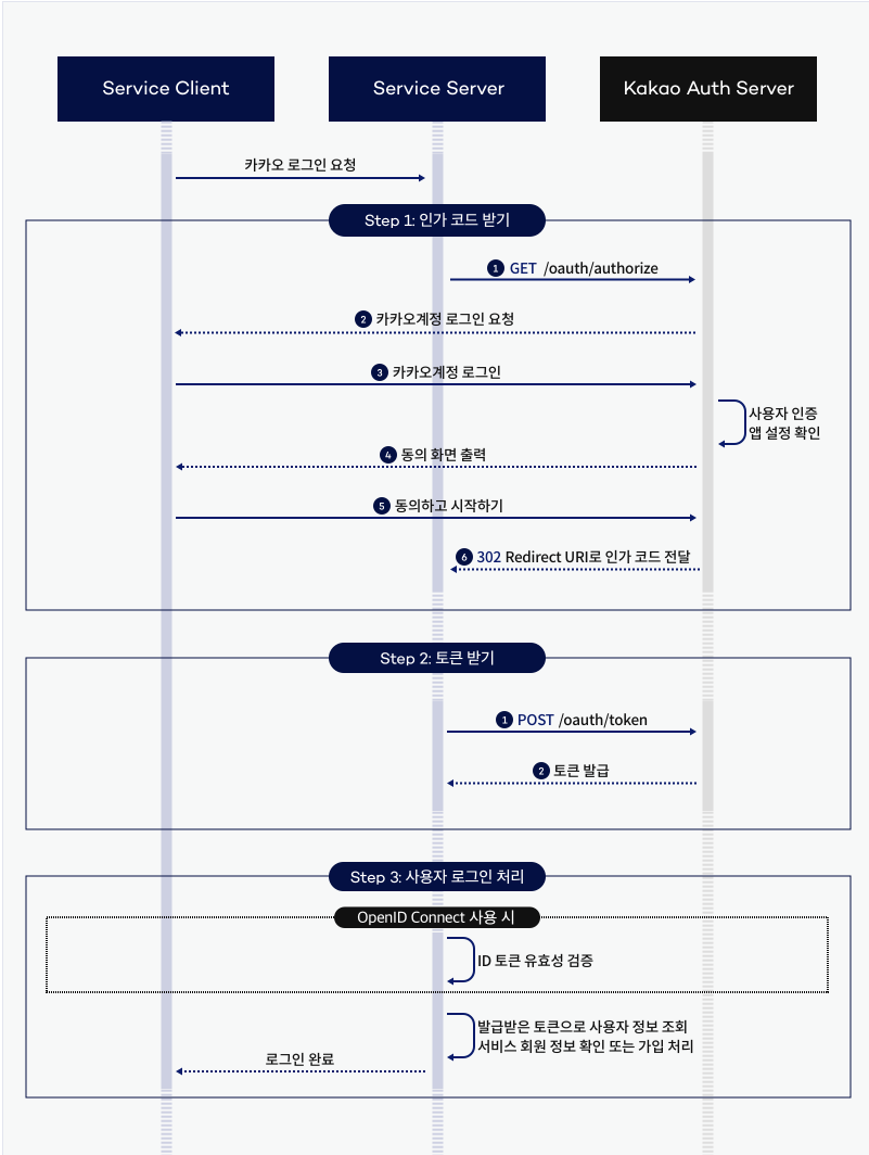 - 유저가 카카오 로그인을 클릭하면 프론트서버가 지정된 URL로 (자세한건 공식문서 참조) 보내 카카오서비스에 로그인을한다