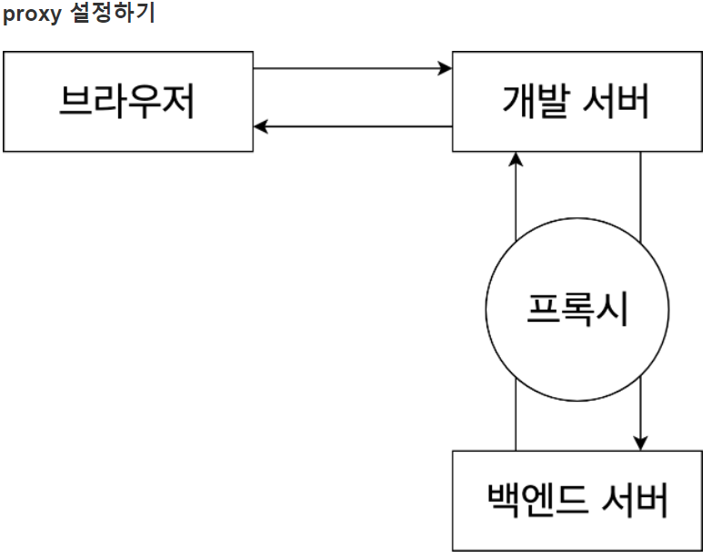 이것을 사용하게 되면 브라우저는 서버에 요청을 하고 서버는 그대로 백엔드서버에 요청을 하게되고 데이터 또한 같은 방법으로 받게 된다 이는 프록시 서버라는 신뢰하는 출처에서 백엔드에서 오는 것이므로 cors에러가 발생하지 않는다.