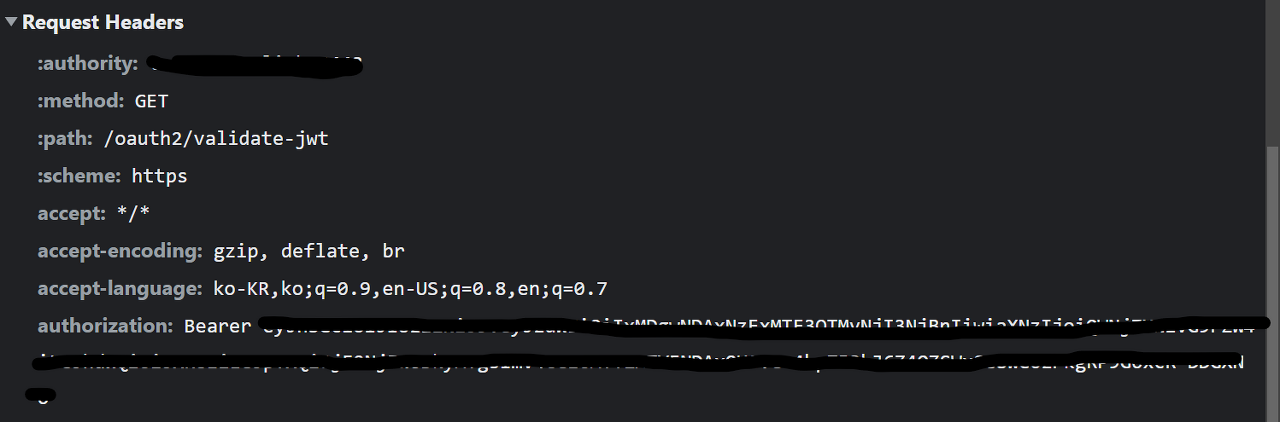 토큰이 발급이 된다면 다음과 같이 header에 authorization으로 access token이 넘어오게 된다.